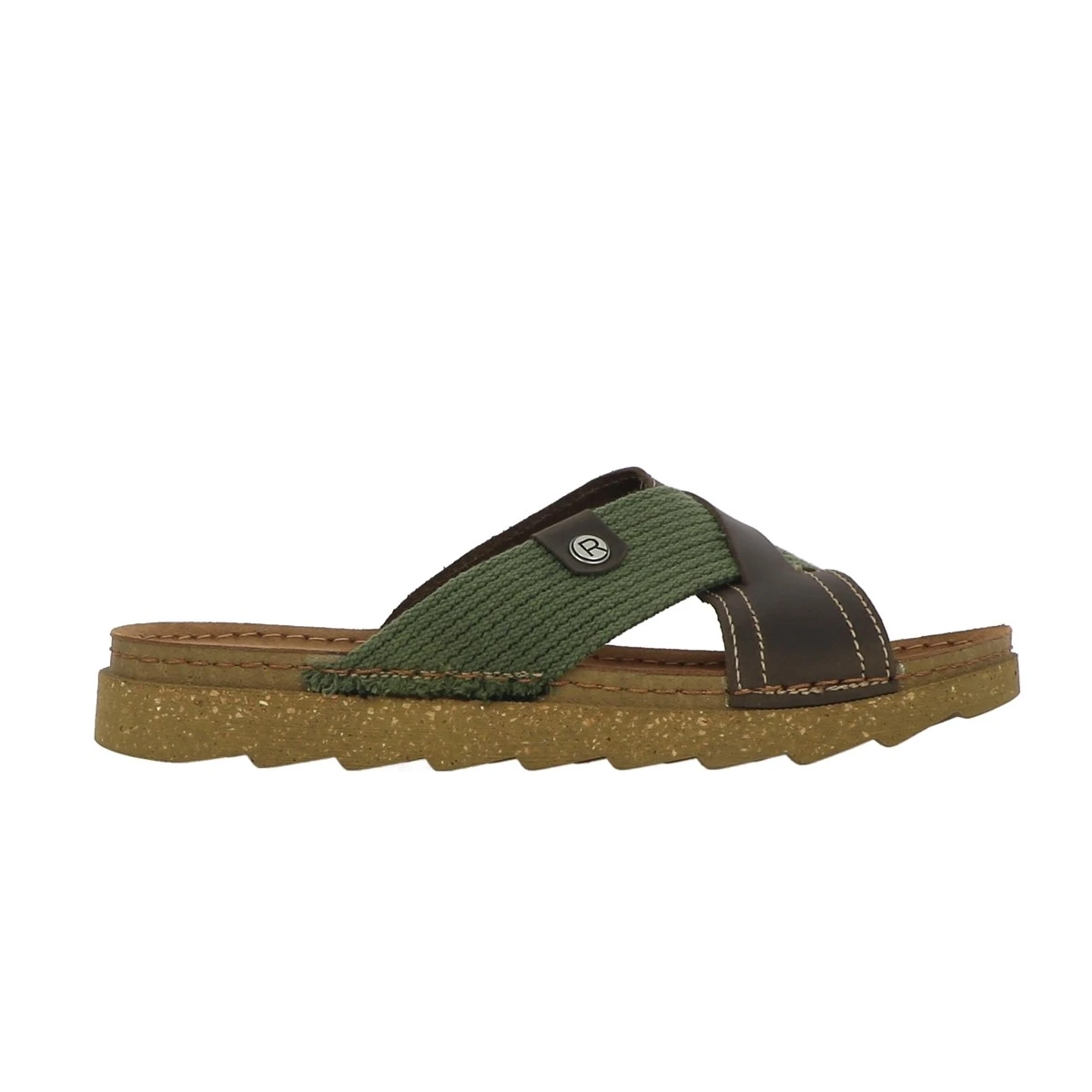 Mules homme Rohde à brides croisées bi matières cuir et textile.