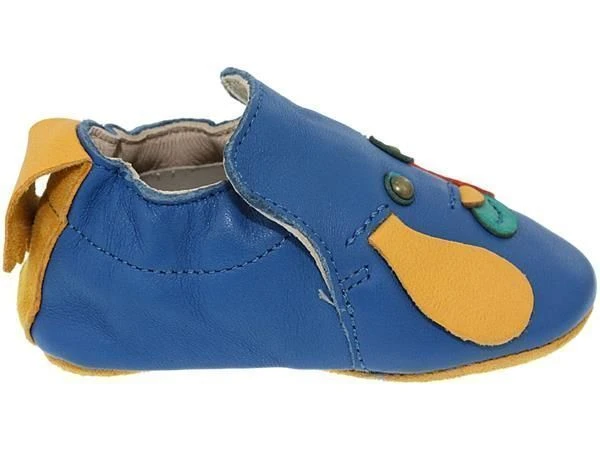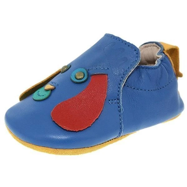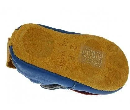 Chaussons enfant de la marquz EZPZ. Modèle BLU BLU CHIOTtout en cuir végétal avec aucune teinture toxique.L’enfant peut les mettre dans la bouche .