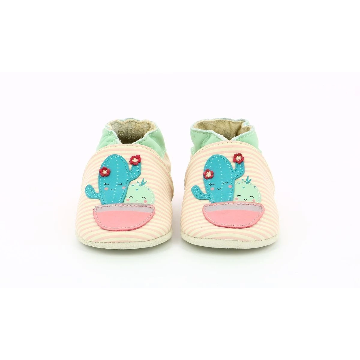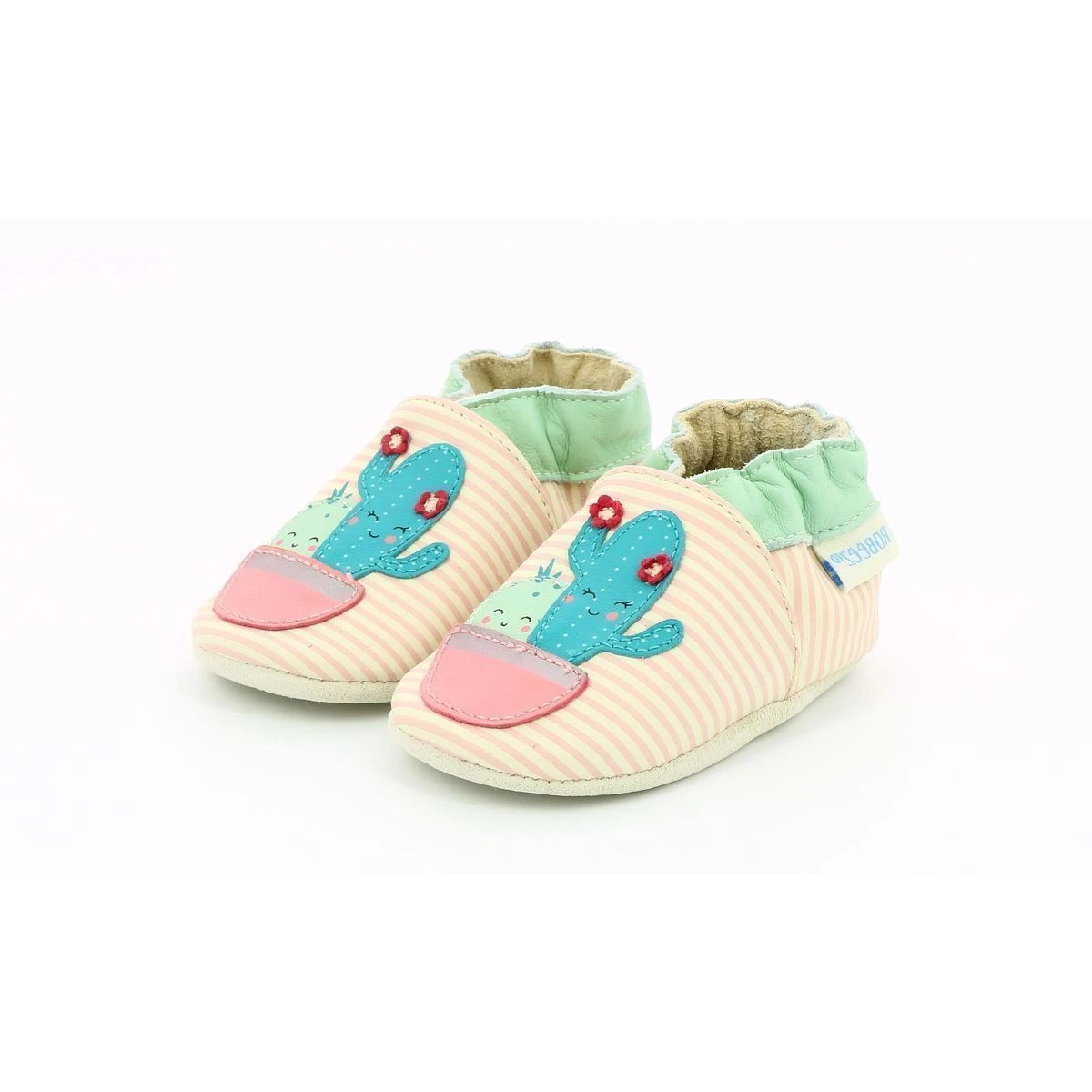 Chaussons bĂ©bĂ© de la marque Robeez en cuir sur le thème du cactus. coloris blanc cassĂ© / rose.Les chaussons parfaits pour tous les jours qui restent toujours en place et enveloppent tendrement les petits pieds.- Semelle antidĂ©rapante en suède pour une utilisation en intĂ©rieur- MatĂ©riaux souples Ă©pousant chaque pas- Cuir français Ă tannage vĂ©gĂ©tal.Chaussons de la naissance jusqu’Ă 6 ans.Bande cheville maintenant le chausson bien en place.Parfaits pour le pied du pied grâce Ă la semelle douce et lĂ©gère.