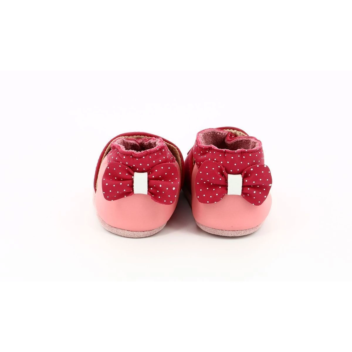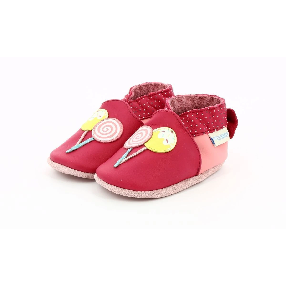 Chaussons enfant de la marque Robeez modèleFunny sweets coloris rouge.Les chaussons parfaits pour tous les jours qui restent toujours en place et enveloppent tendrement les petits pieds.- Semelle antidérapante en suède pour une utilisation en intérieur- Matériaux souples épousant chaque pas- Cuir français à tannage végétal.Chaussons de la naissance jusqu’à 6 ans.Bande cheville maintenant le chausson bien en place.Parfaits pour le pied du pied grâce à la semelle douce et légère.