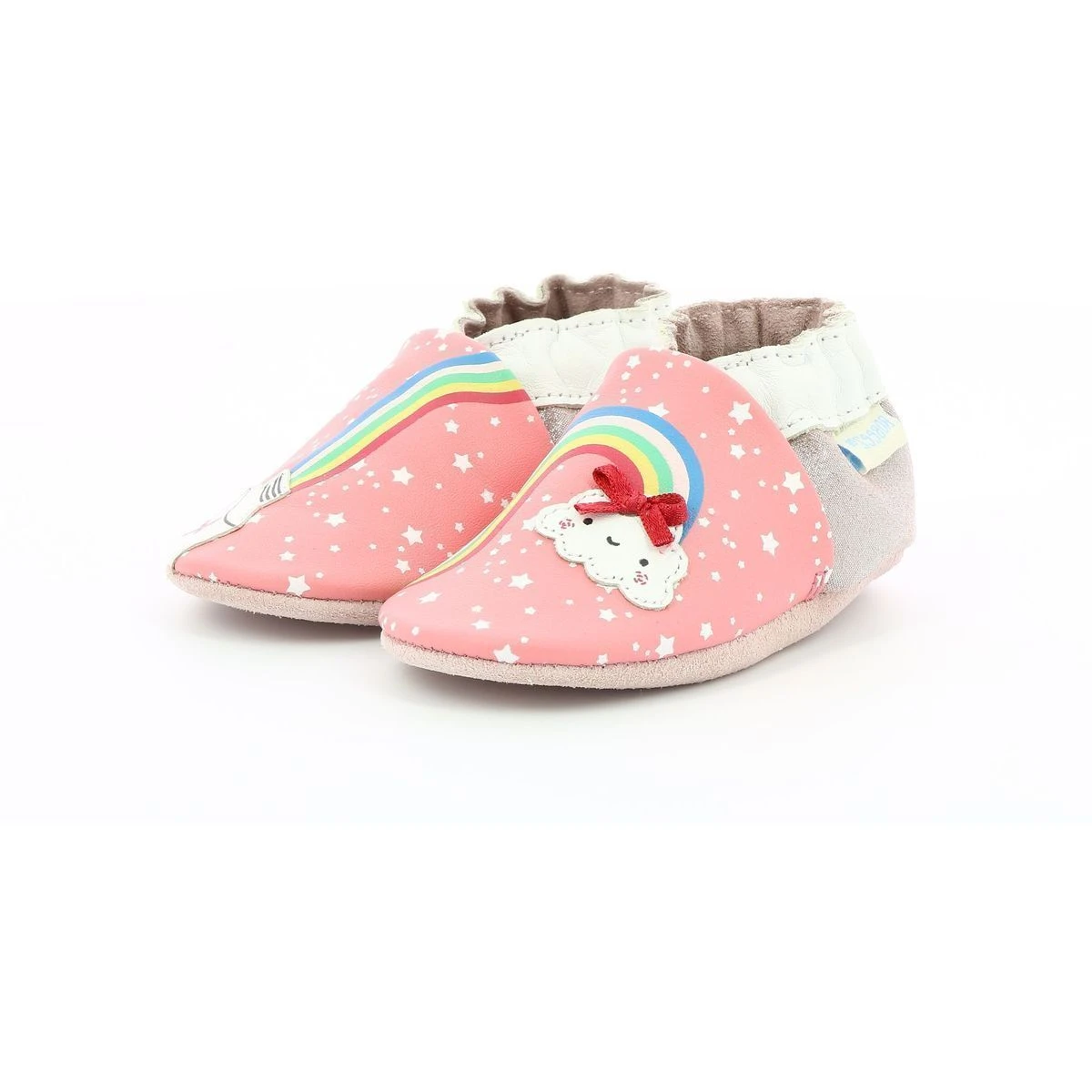 Chaussons enfant de la marque Robeez modèle Rainbow coloris paste rose.Les chaussons parfaits pour tous les jours qui restent toujours en place et enveloppent tendrement les petits pieds.- Semelle antidérapante en suède pour une utilisation en intérieur- Matériaux souples épousant chaque pas- Cuir français à tannage végétal.Chaussons de la naissance jusqu’à 6 ans.Bande cheville maintenant le chausson bien en place.Parfaits pour le pied du pied grâce à la semelle douce et légère.
