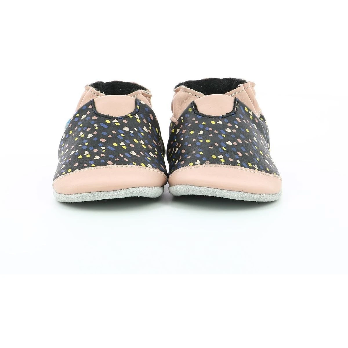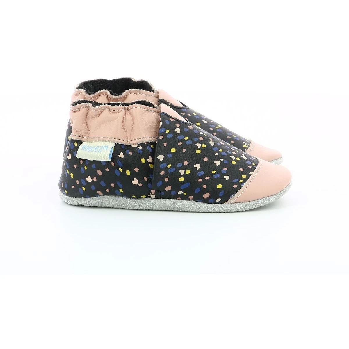 Chaussons bébé de la marque Robeez en cuir modèle Rainy love.Ces cuirs dont le tannage végétal est élaboré à partir d’écorces de fruits, de feuilles d’acacia et de mimosas.