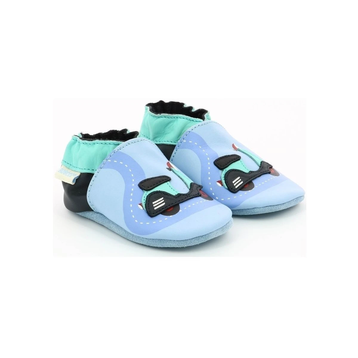 Chausson enfant de la marque Robeez en cuir. Modèle scooter vousassurera un confort.