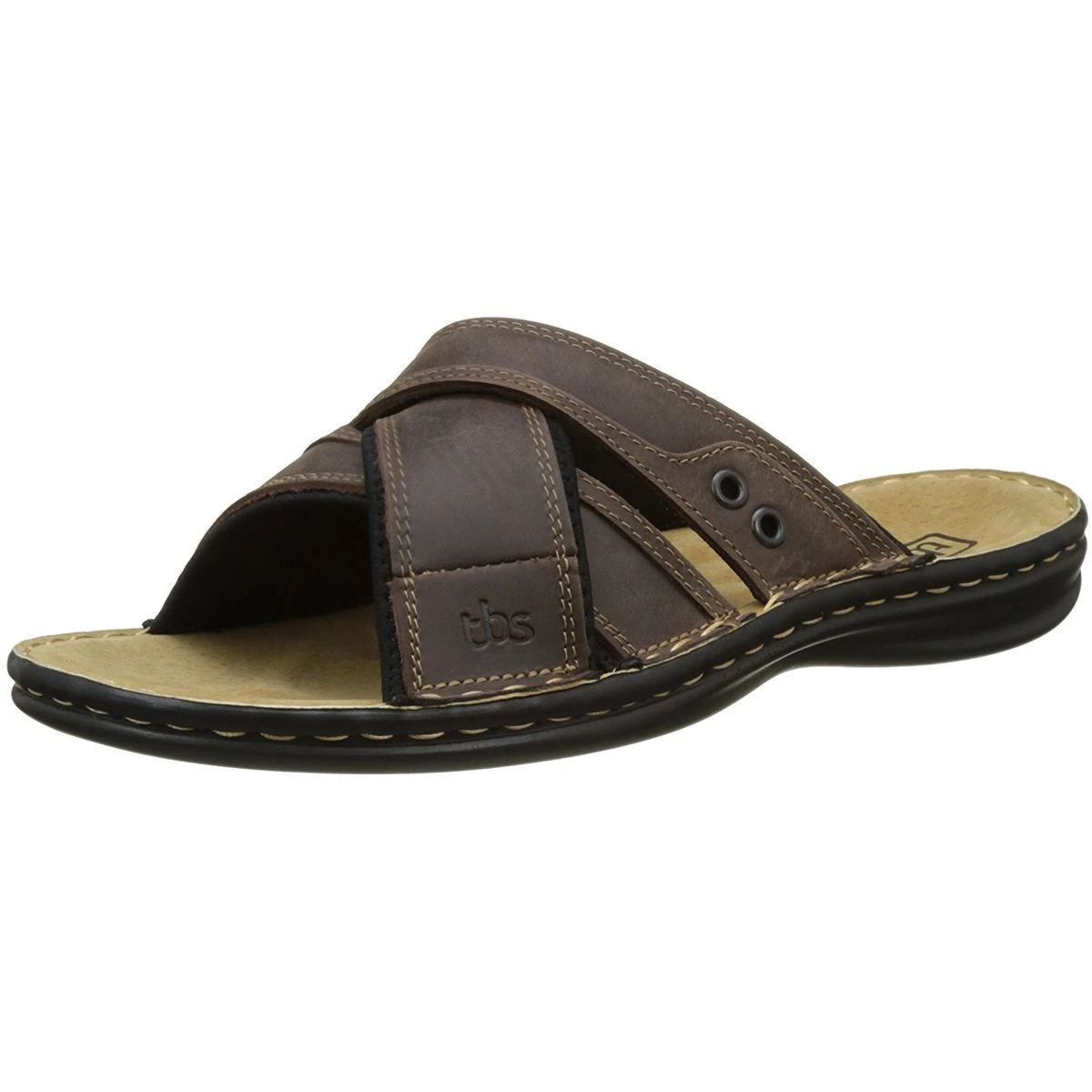 Mules en cuir marron pour homme de la marque Tbs modèle Benaix. Dessus cuir, doublure textile, première de propreté en cuir velours. Cousu main. Cuir pleine fleur. Légères et confortables au porté, vous ne pourrez plus vous en passer ! Coloris : marron.