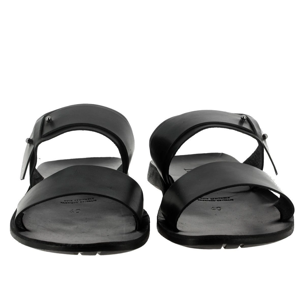 Mules mario en cuir pour homme de marque IOTA. Une élégance en toutes circonstances, même en vacances ! Un modèle 100% cuir, fabriquées dans la pure tradition italienne, finit par des mains expertes et perfectionnistes. Cette mule cuir s’accordera à merveille avec vos bermudas et pantalons d’été. On aime son inspiration chic et minimaliste caractérisée par deux larges brides qui offrent un maintient impeccable. Dessus, doublure et première cuir. Semelle caoutchouc antidérapante et souple. Coloris : noir. Fabriquées en Italie