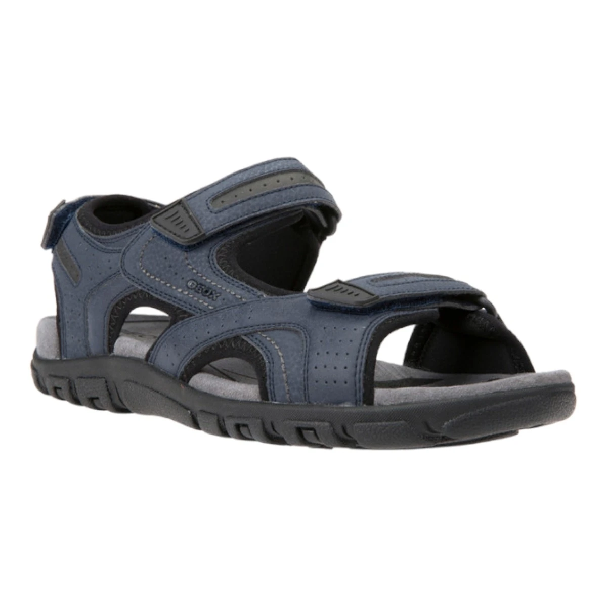 Sandales sportwear pour homme de la marque Geox modèle Strada. Tige en synthétique.Trois brides fermées par scratch dont une au talon. Semelle extérieure en caoutchouc.