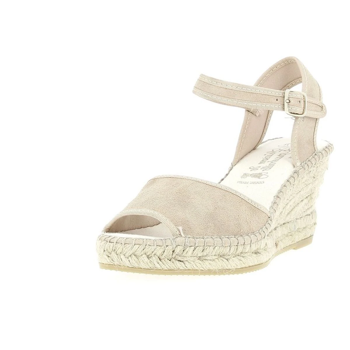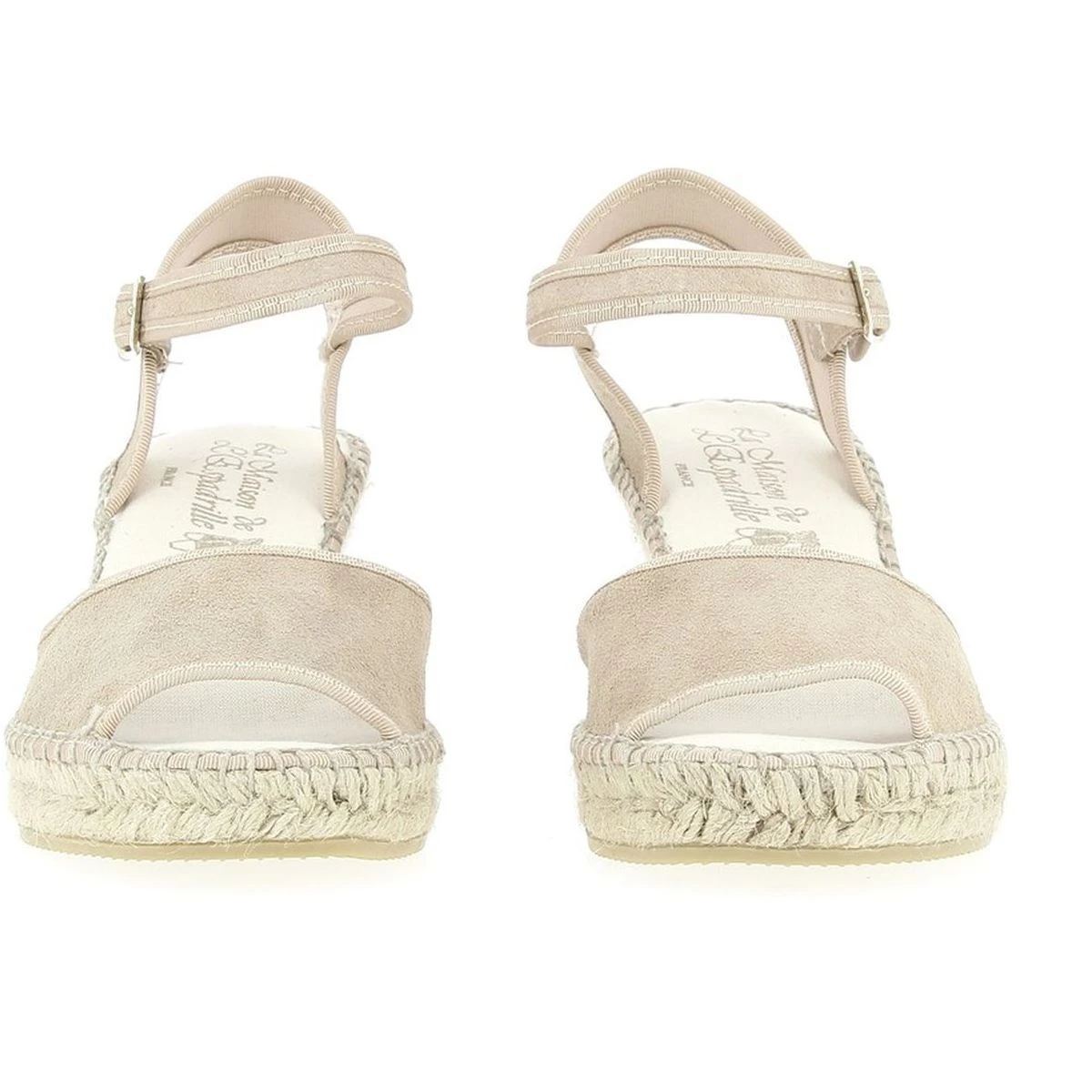 Sandales femme compensée de la marque la maison de l’Espadrille en cuir coloris beige modèle 250 talon compensé de 7 cm.