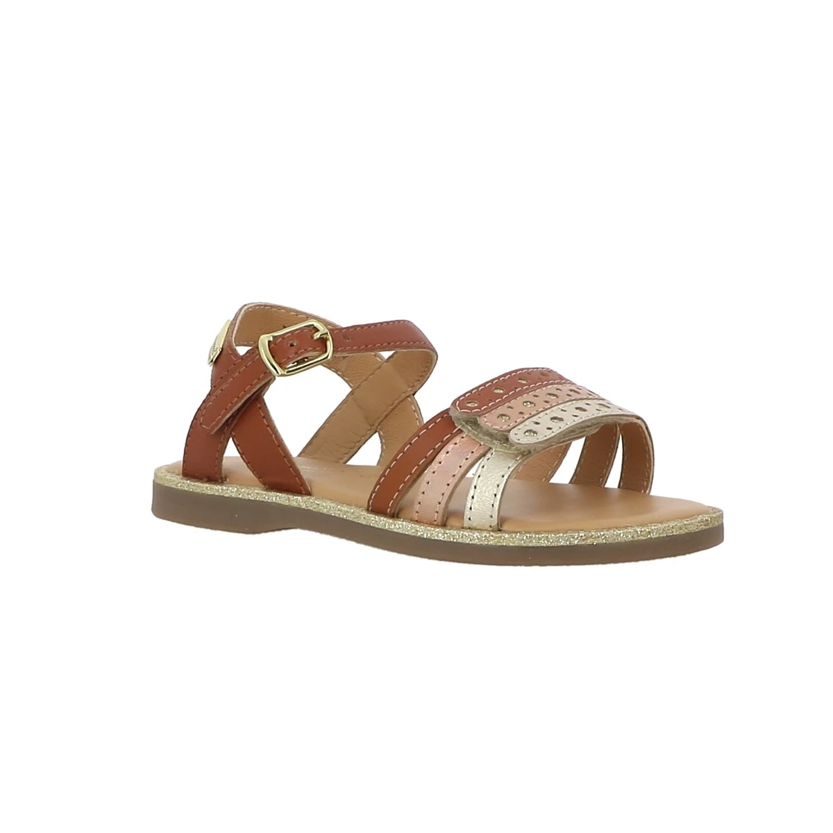 Il fait nul doute que ces sandales en cuirtan et irisĂ© rĂ©haussĂ©es d’un liserĂ© dorĂ© plairont autant aux filles qu’Ă leur parents !