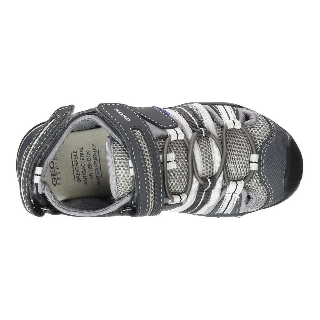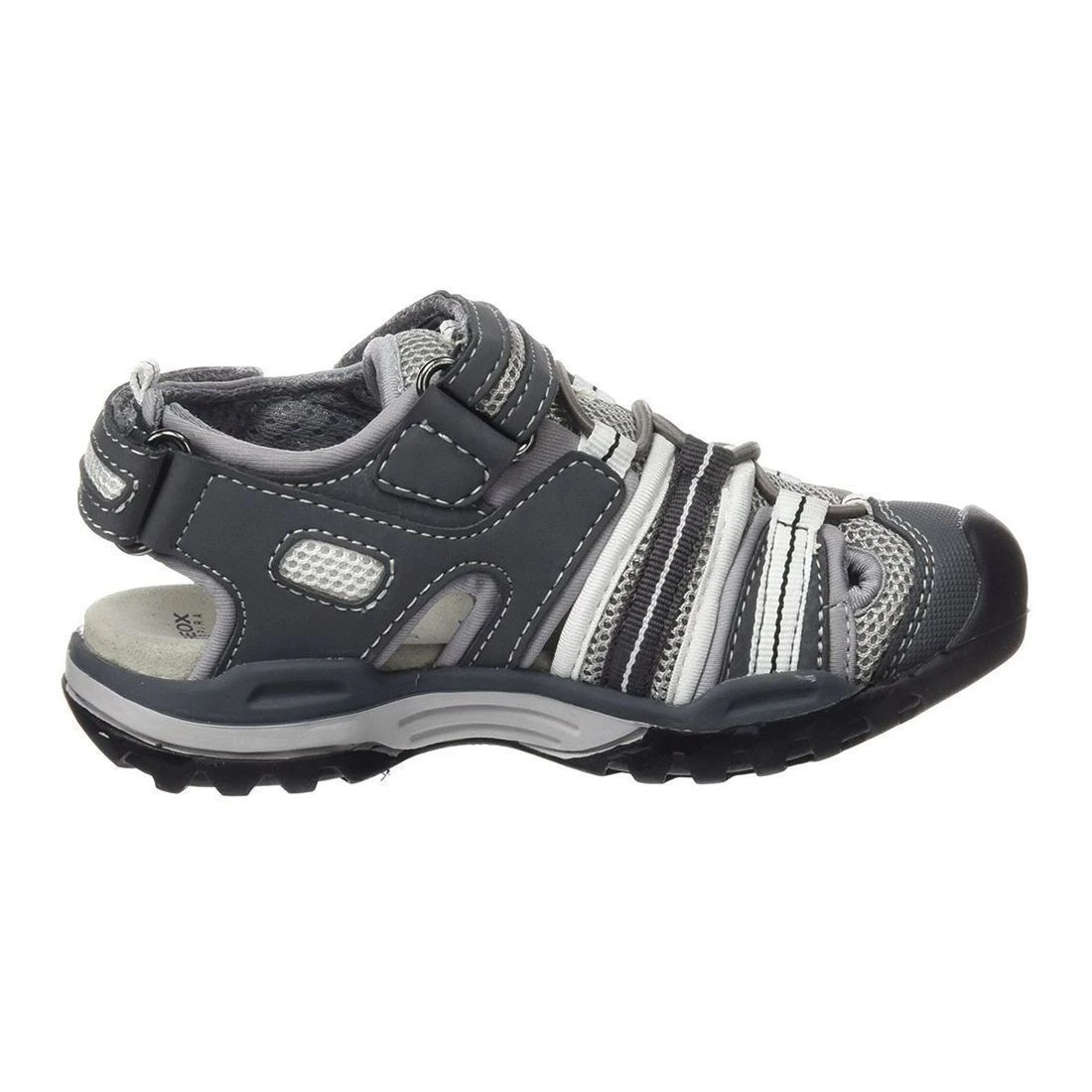 Sandales à bout fermé de la marque Geox J Borealis C.Idéales pour protéger le bout des pieds tout en les aérant.Semelle intérieure en cuir antibactérienne et avec système antic- choc.Ajustement par lacets élastique + bande velcro sur le cou-de-pied et au talon.Ces sandales montantes enfant sont résistantes à l ‘eau : l’empeigne, la doublure et la semelle sont réalisées en matériau hydrofuge. Les chaussures sont adaptées à une utilisation en eau douce et en eau salée.Coloris : gris.