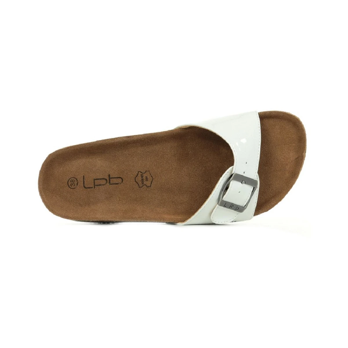 Bride à boucle blanche avec paillettes. Semelle intérieure anatomique en cuir.