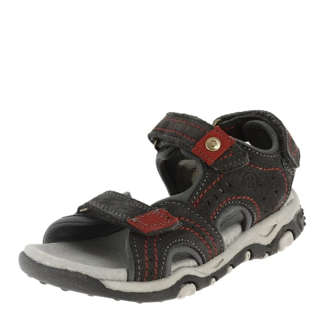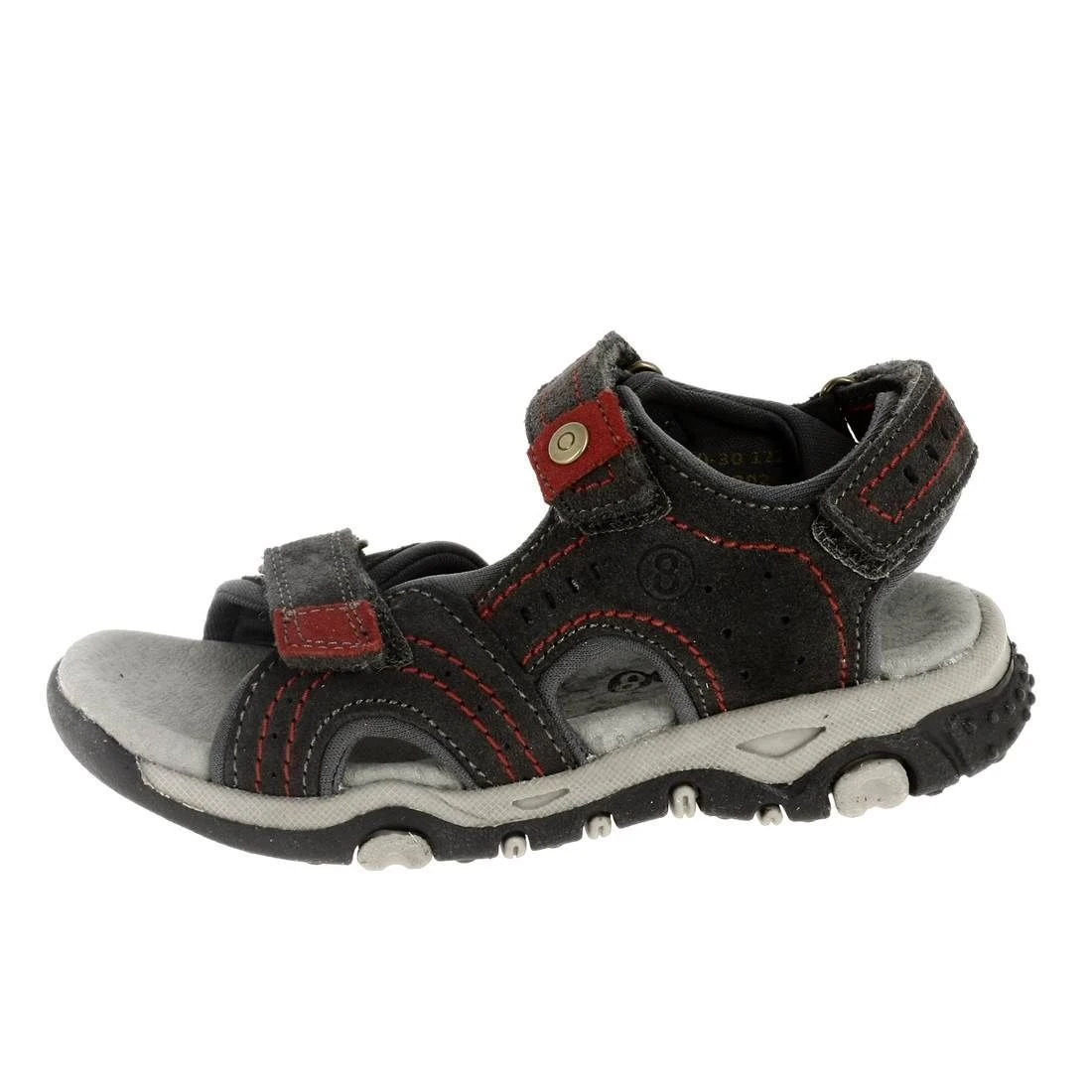 Nus pieds garçon de la marque MOD8.Entièrement ajustable grâce aux trois brides velcros, ces chaussures d’été offreront un maintien sur mesure pour votre enfant.Semelle intérieure en cuir. Tige en cuir nubuck gris foncé.Doublure textile respirant. Semelle souple en caoutchouc.