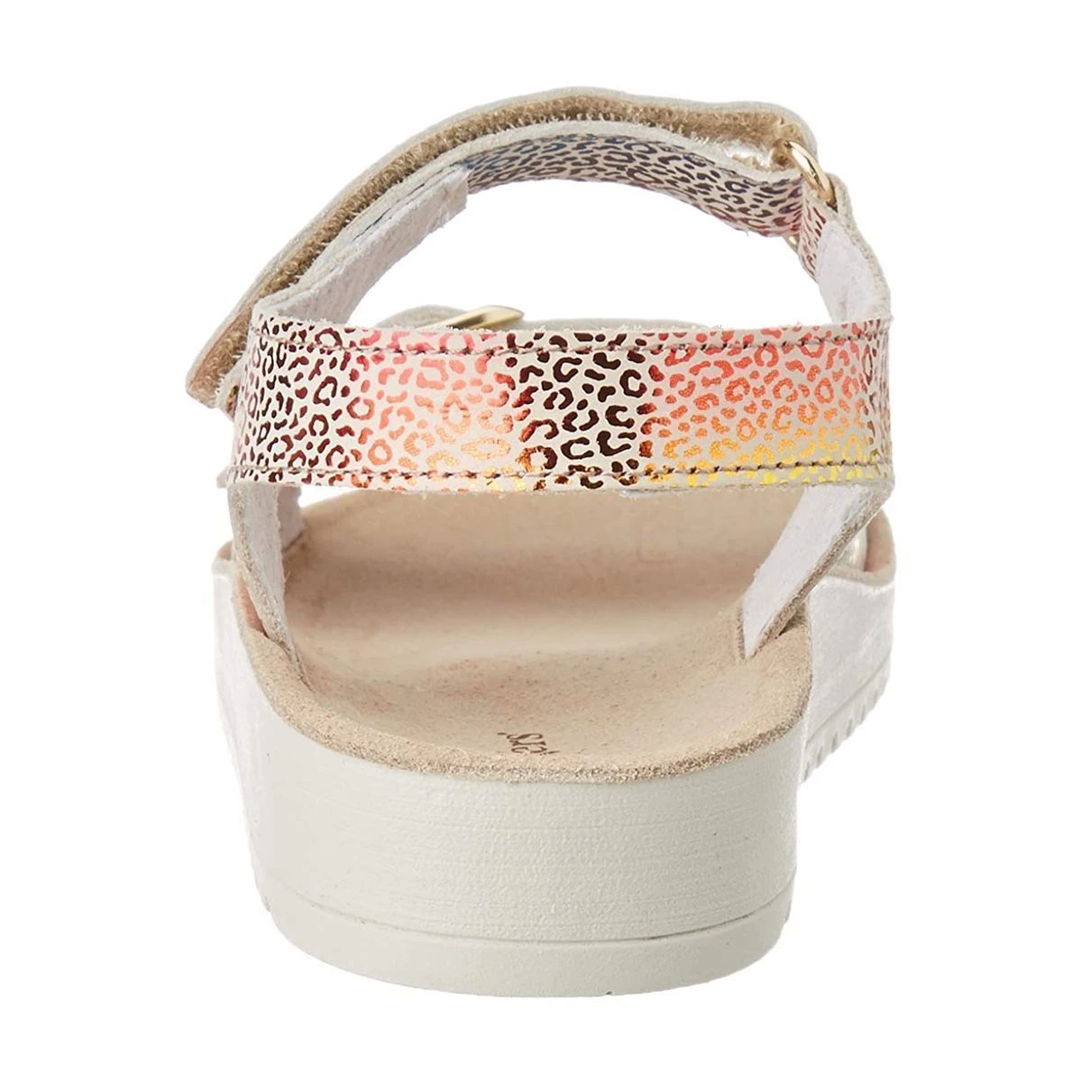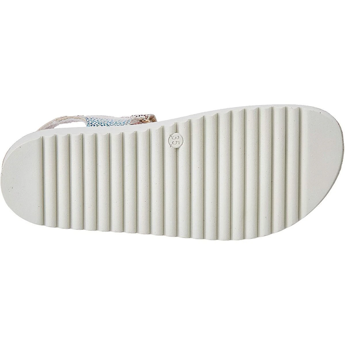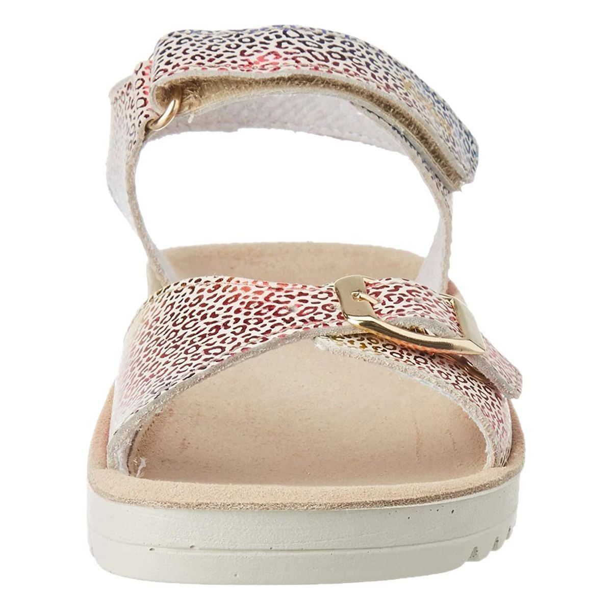 Nus pieds en cuir pour fille de la marque Kickers modèle Odyssa.Bride à boucle à ajuster sur le devant et bride à scratch à la cheville.Dessus, doublure et première cuir. Semelle ultra souple et flexible en caoutchouc.Coloris : multicolore.Made in Spain .