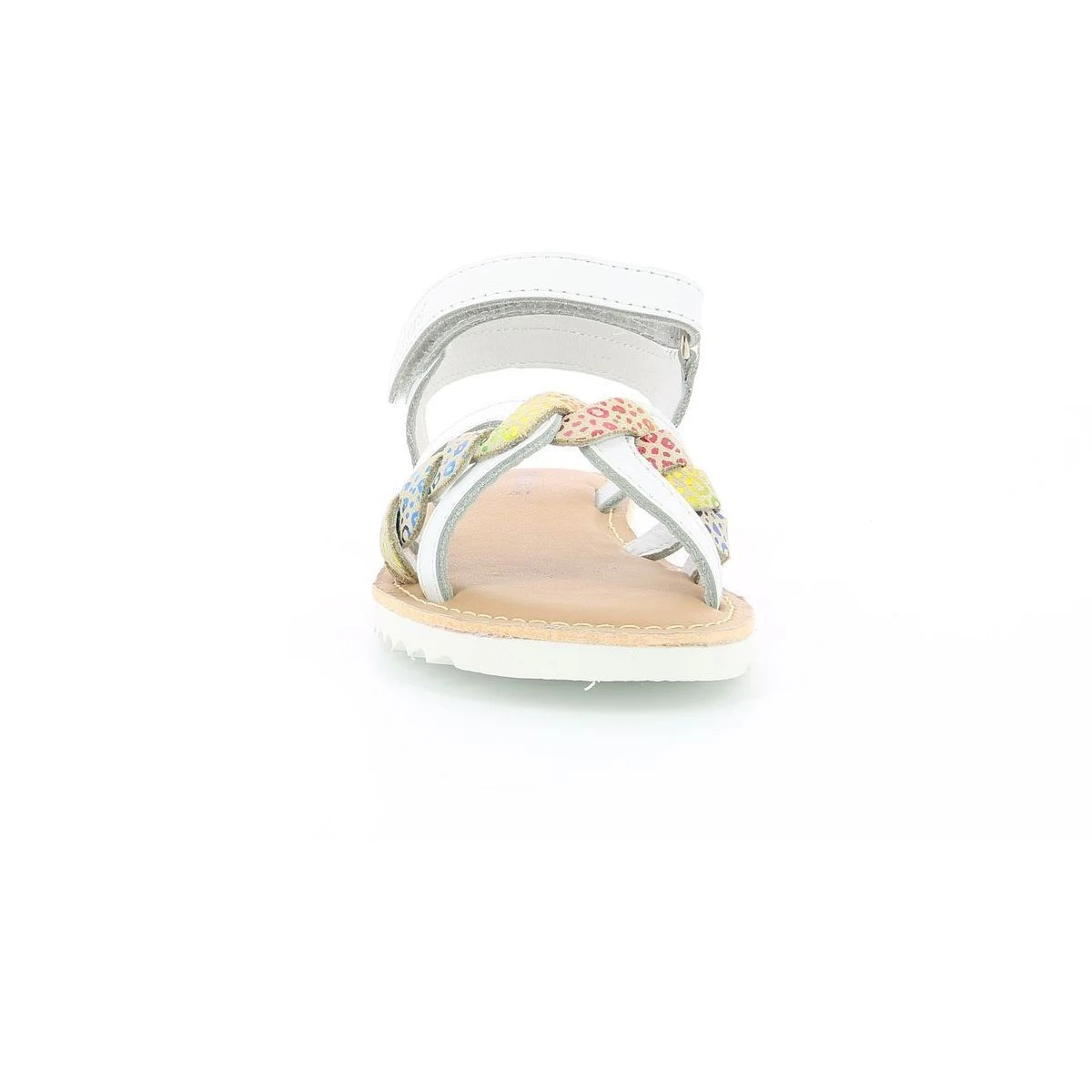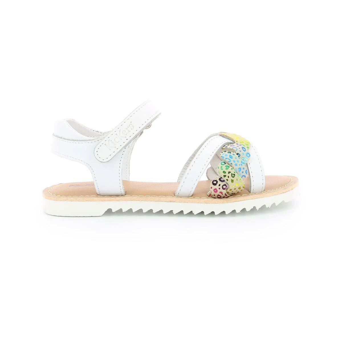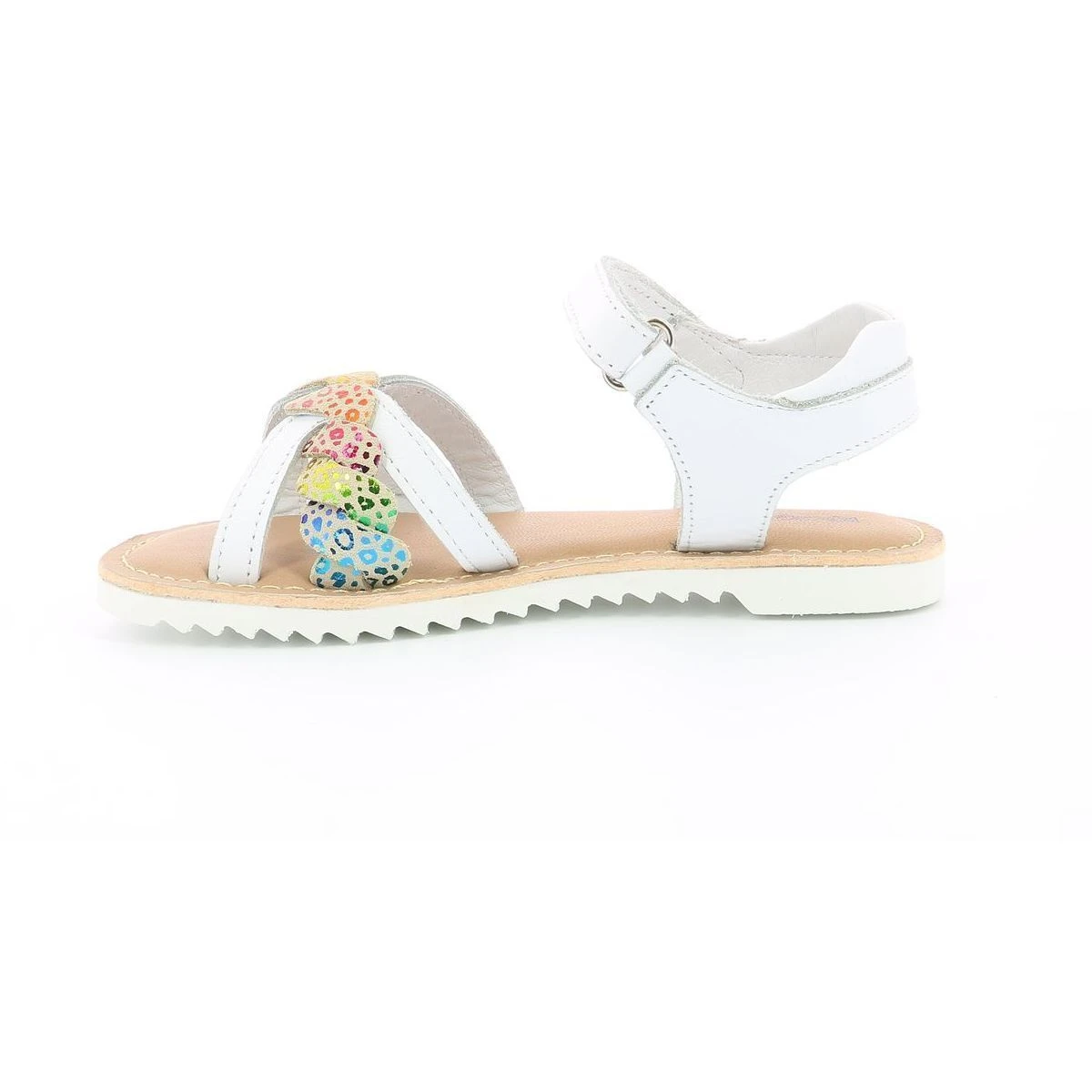 Sandales fille de la marque Kickers modèle Sharkky.Modèle très léger entièrement en cuir avec semelle avec coussin d’air.Première en cuir. Fermeture avec un velcro sur le coup de pied.Coloris : blanc multi leopard .