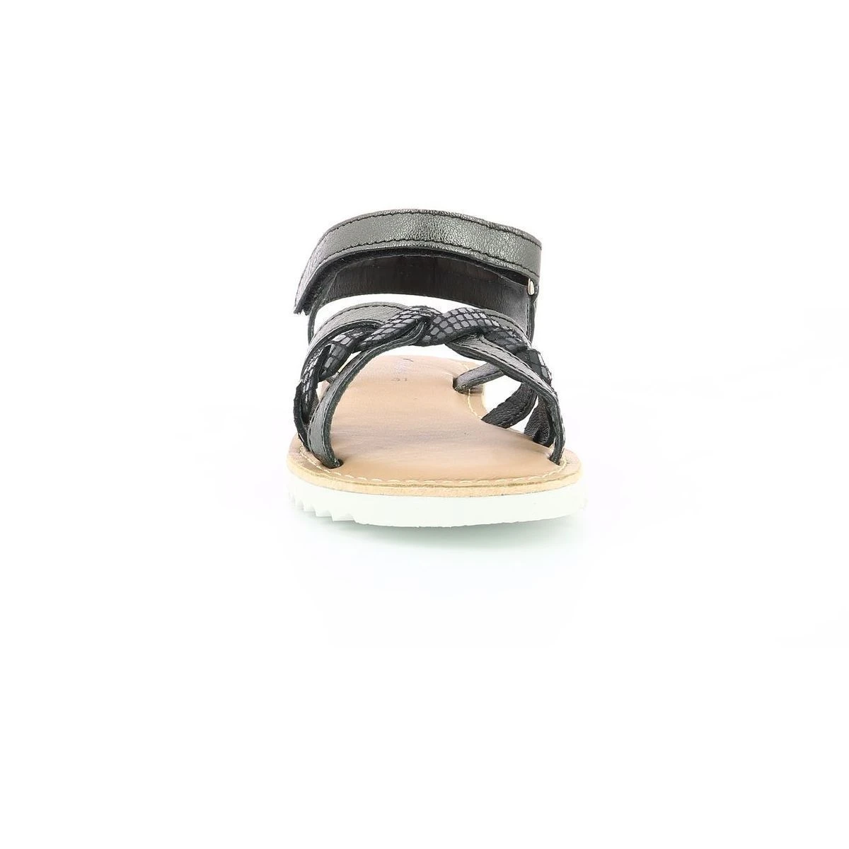 Sandales fille de la marque Kickers modèle Sharkky.Modèle très léger entièrement en cuir avec coussin a air dans la semelle qui assure un confort permanent.Première en cuir. Fermeture avec un velcro sur le coup de pied.Coloris : gris noir reptile .