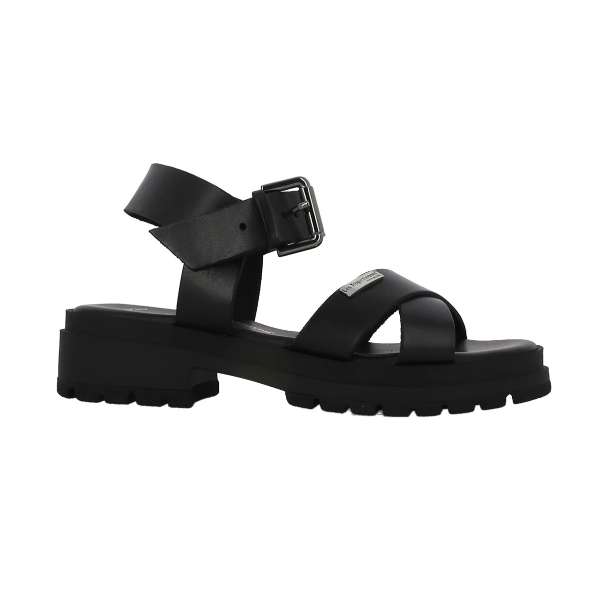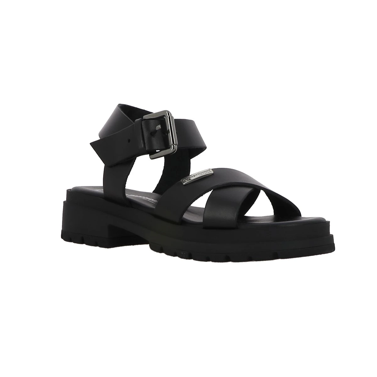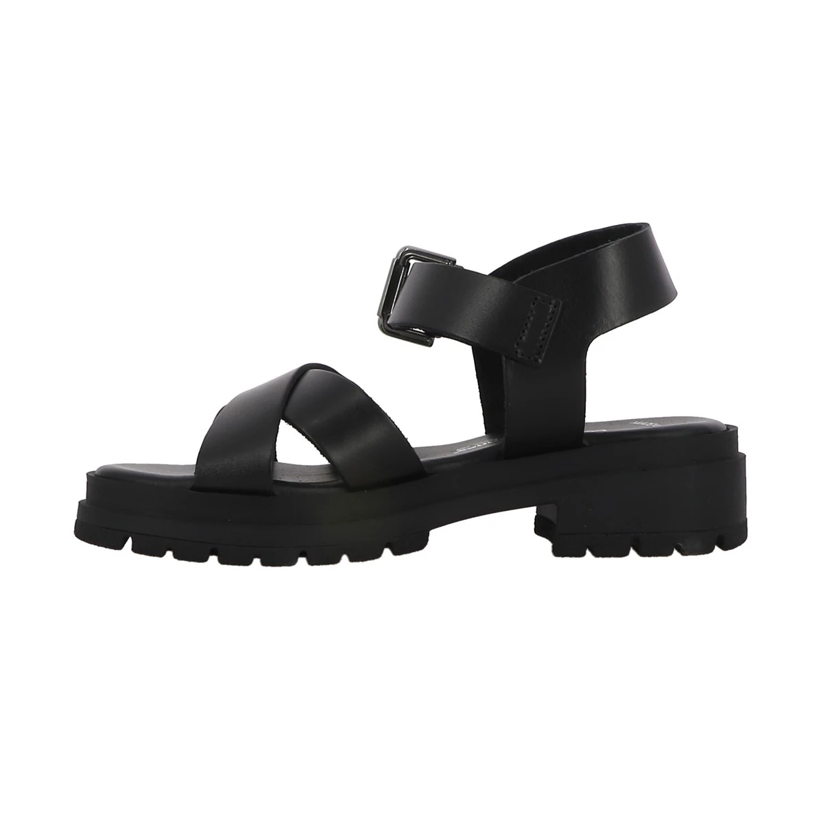 Sandales femme Tiha en cuir lisse montée sur une semelle crantée avec talon carré.