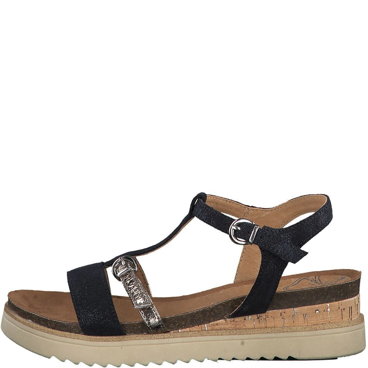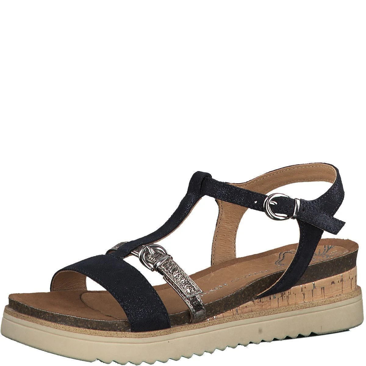 sandales femme de la marque Allemande Marco Tozzi modèle Julia en cuir en coloris bleu / bleu metal / silver