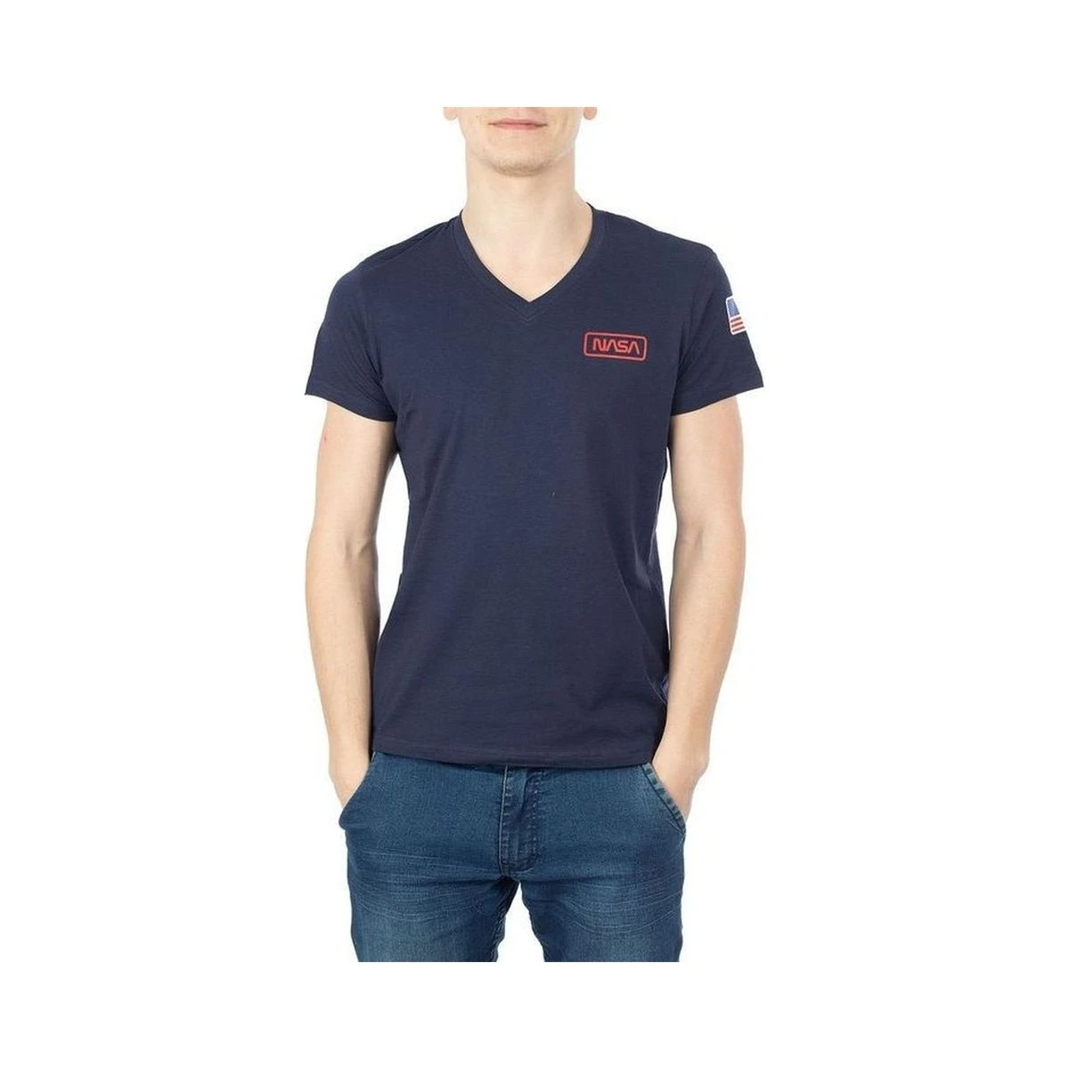 T shirt homme NASA 100% coton.Col V. Coloris : bleu. Maanches courtes